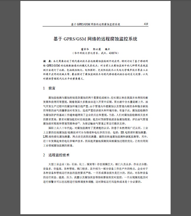 基于GPRS/GSM 網(wǎng)絡(luò)的遠(yuǎn)程腐蝕監(jiān)控系統(tǒng)