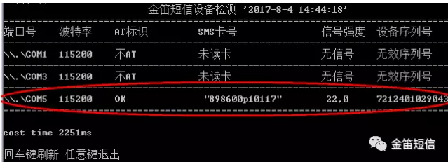 5、使用金笛短信檢測(cè)檢測(cè)短信貓連接是否正常;