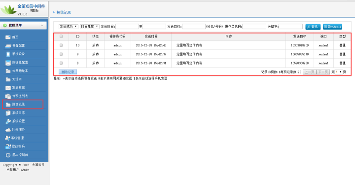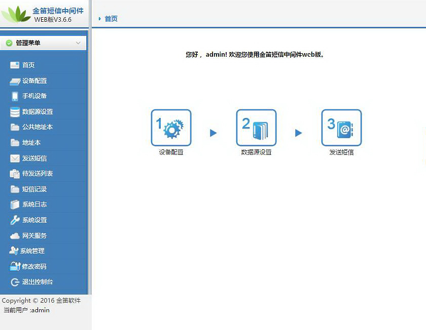 金笛短信中間件WEB版:提供管理界面及后臺服務;