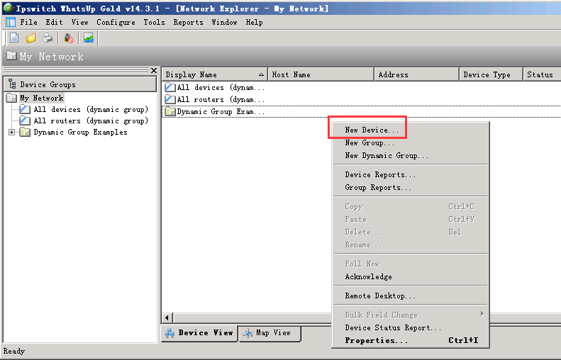 在右側空白處,右鍵點擊后可以看到菜單項,點擊“New Device”會彈出窗口如下圖所示: