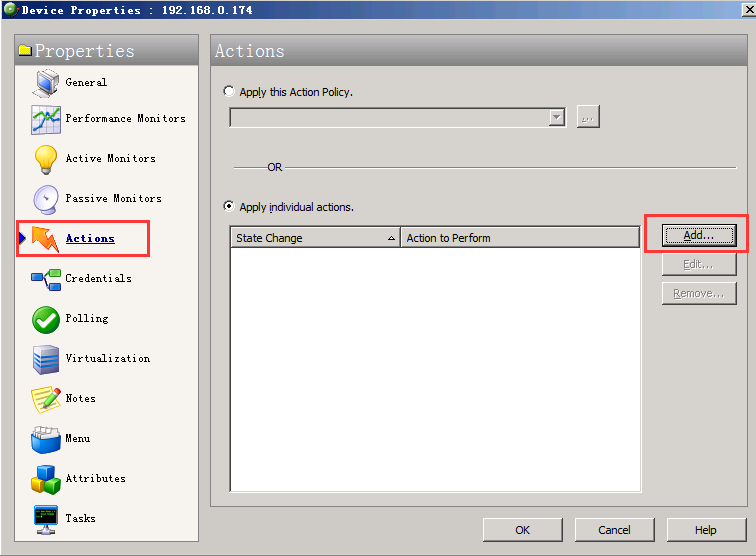 在上圖紅框處填寫被監(jiān)控對象的ip地址以及設備名稱,填寫完成后,點擊OK按鈕后,會彈窗顯示該對象的詳細配置,下一步要配置報警動作,如下圖所示: