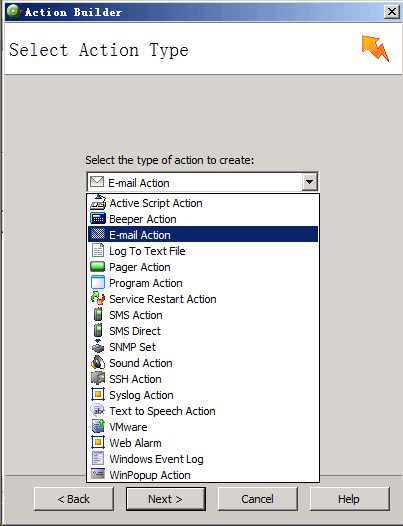 選擇上圖中“E-mail Action”后點擊Next即可,隨后會彈出對話框,配置發(fā)信郵箱以及接收報警提醒的郵箱,如圖所示: