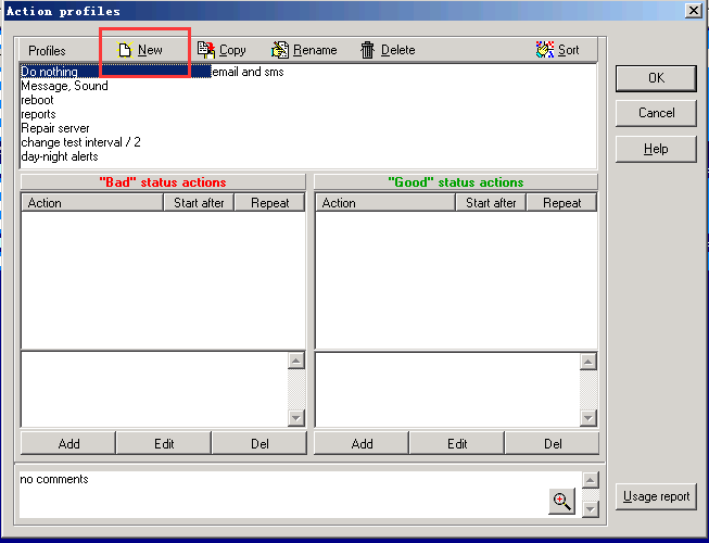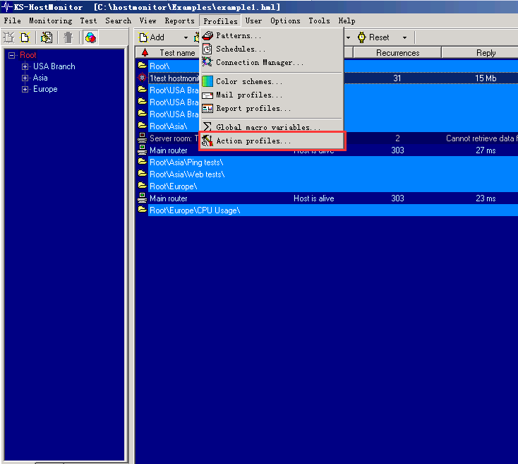點擊圖中profiles菜單下“Action profiles…”,會彈出窗口如下圖所示: