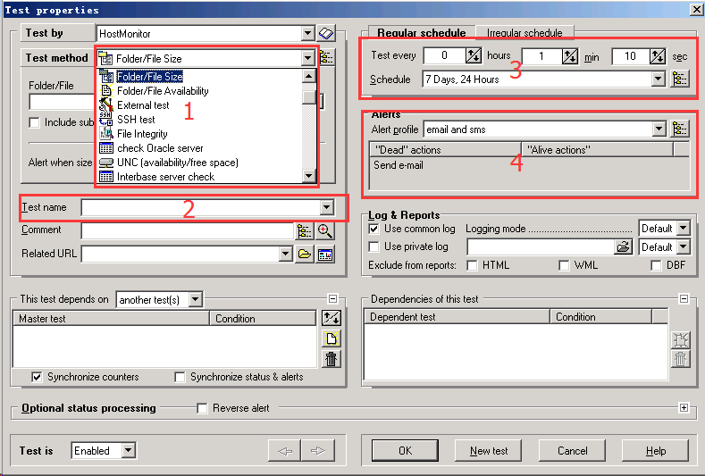 在上圖紅框1中,選擇相應的報警類型,圖中以監(jiān)控指定文件大小為例。