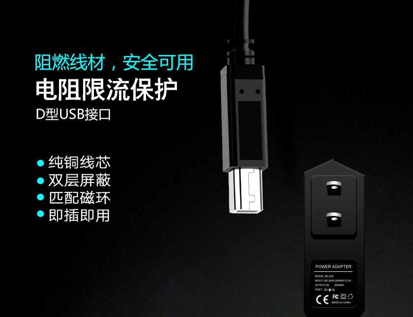 1、電源接口采用D型USB接口,輸入電壓為5V,可用電腦直接供電;