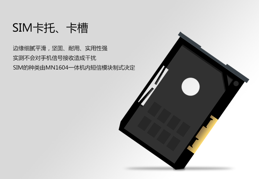3、SIM卡槽用來放置SIM,SIM的種類由MN1604一體機內短信模塊制式決定;