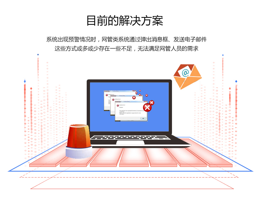 系統(tǒng)出現(xiàn)預警情況時,網管類系統(tǒng)通過彈出消息框、發(fā)送電子郵件。這些方式或多或少存在一些不足,無法滿足網管人員的需求: