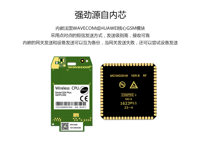 MN1604短信機所用的模塊均為工業(yè)級短信通道,內嵌法國WAVECOM或HUAWEI核心GSM模塊,采用點對點的短信發(fā)送方式,發(fā)送級別高,接收可靠。且內嵌的網關發(fā)送和設備發(fā)送可以互為備份,當網關發(fā)送失敗之后,還可以嘗試設備發(fā)送。