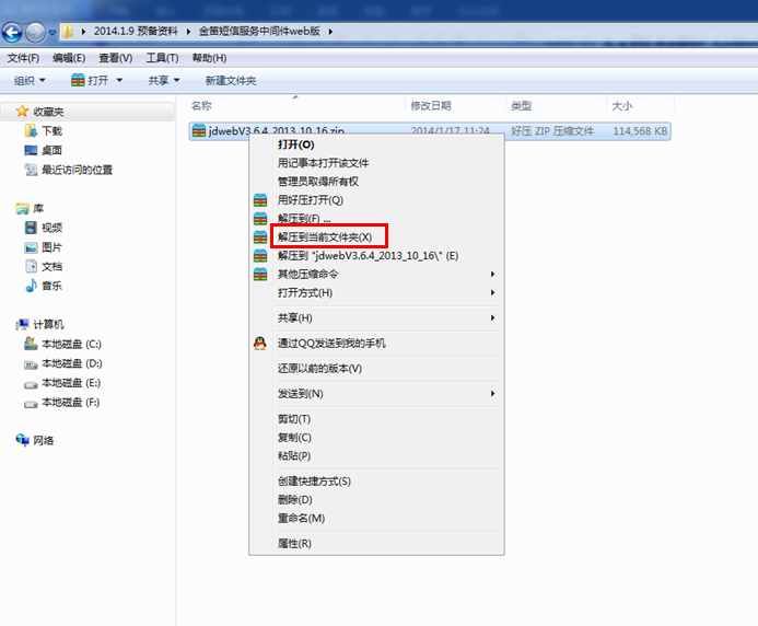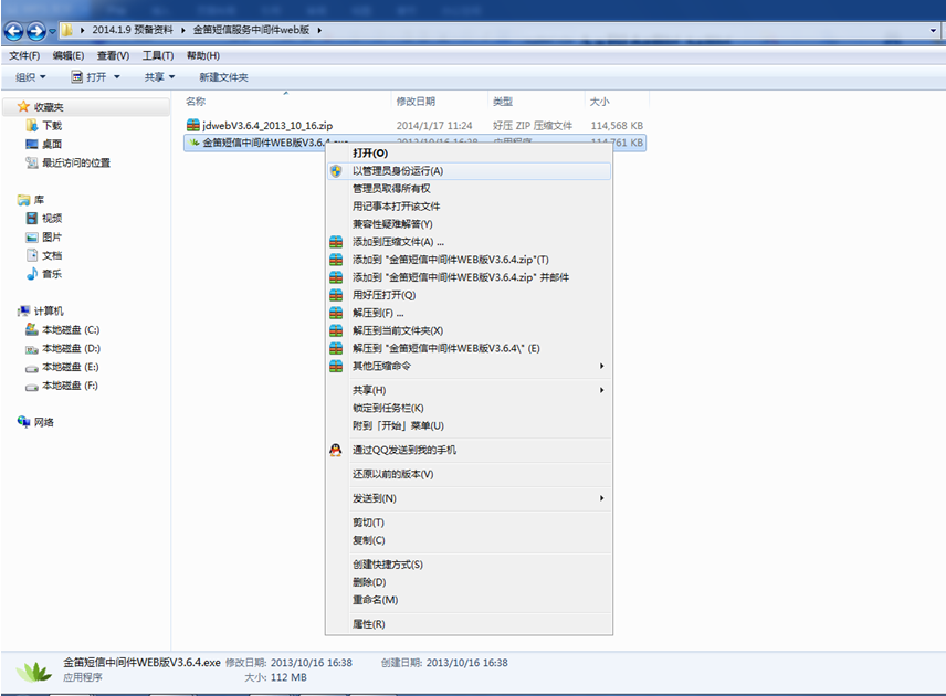 首先,將光盤里的金笛短信服務(wù)中間件web版進行解壓縮,如下圖: