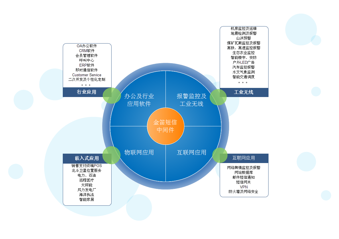 金笛短信中間件Web版最大限度地降低了短信設(shè)備開發(fā)及部署的門檻。使廣大程序員無需要了解短信硬件,只需要跟數(shù)據(jù)庫打交道就可以實現(xiàn)短信功能。通過開放的數(shù)據(jù)庫接口和HTTP接口,使各種C/S、B/S 應(yīng)用軟件增加短信功能變得十分方便、快捷、可靠。短信功能的應(yīng)用,使得信息傳遞在空間上無限拓展,在時間上極速方便,同時又極大地降低了通訊成本,提高了效率。
