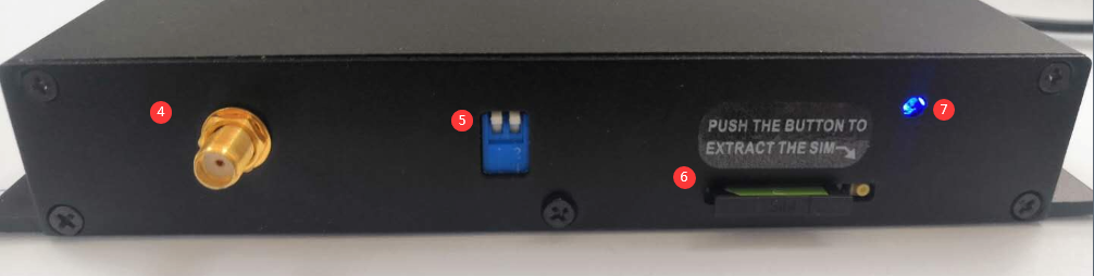 ?①電源接口??? ②USB 接口???? ③接線端子 ??? ④天線接口?? ?⑤撥碼開關(guān)?? ??⑥SIM卡槽??? ⑦信號指示燈 ? ???