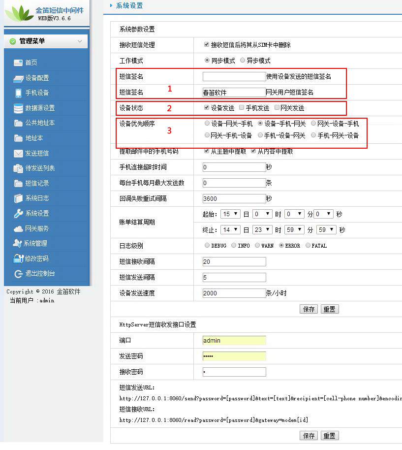 金笛短信中間件WEB版:提供管理界面及后臺服務;