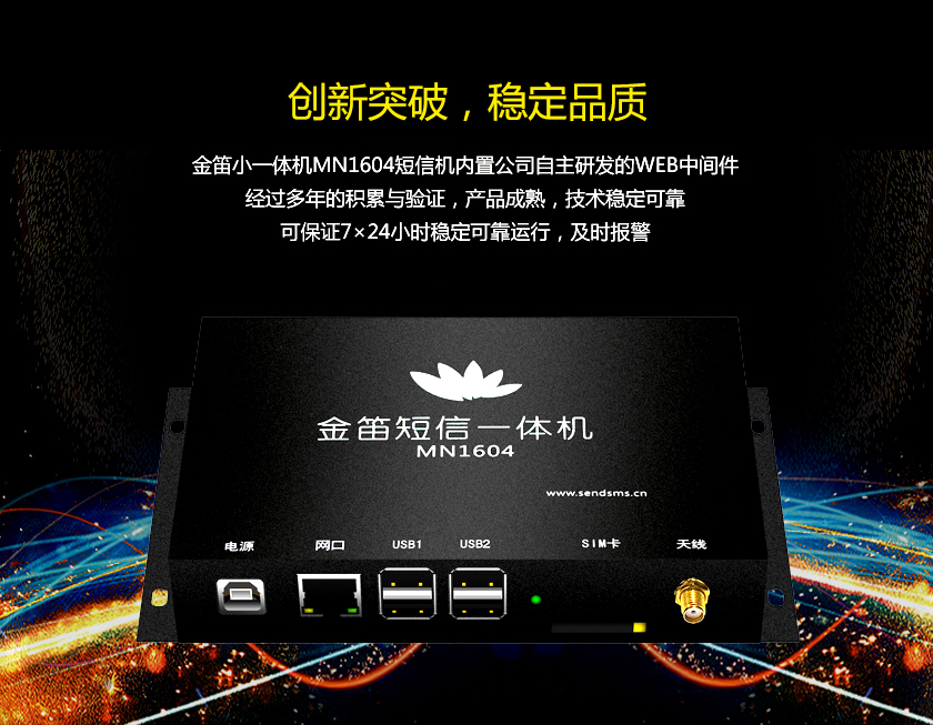 MN1604短信機內置公司自主研發(fā)的WEB中間件,經過多年的積累與驗證,產品成熟,技術穩(wěn)定可靠,可保證7×24小時穩(wěn)定可靠運行,及時報警。